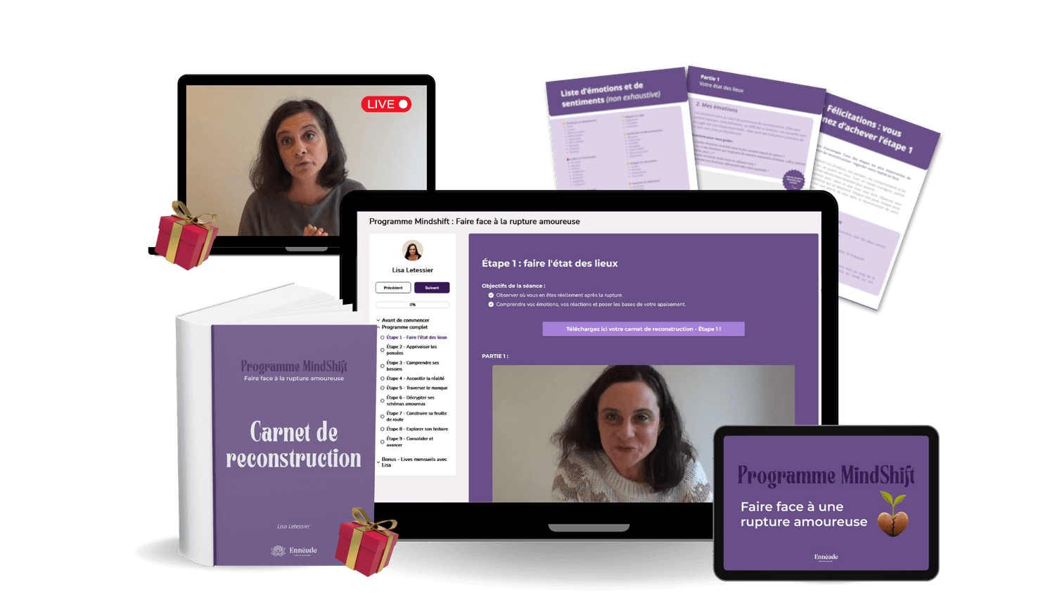 Le programme Mindshift : Faire face à sa rupture amoureuse est là pour vous accompagner, pas à pas, vers une version plus forte et plus consciente de vous-même.